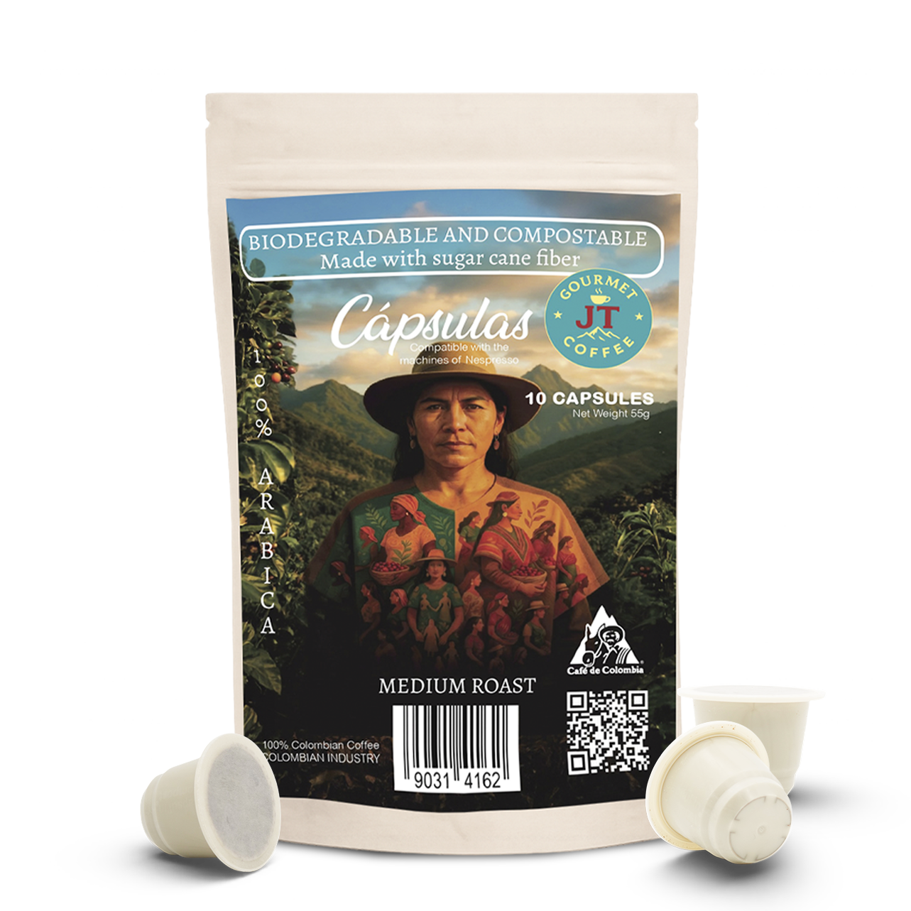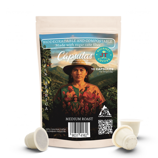 Discover the authentic flavor of JT Coffee Gourmet, a premium Colombian coffee crafted from carefully selected Arabica beans grown in Colombia’s rich coffee regions. This combo combines the convenience of coffee capsules, the tradition of ground coffee, and a large coffee mug designed to make every coffee moment more enjoyable.